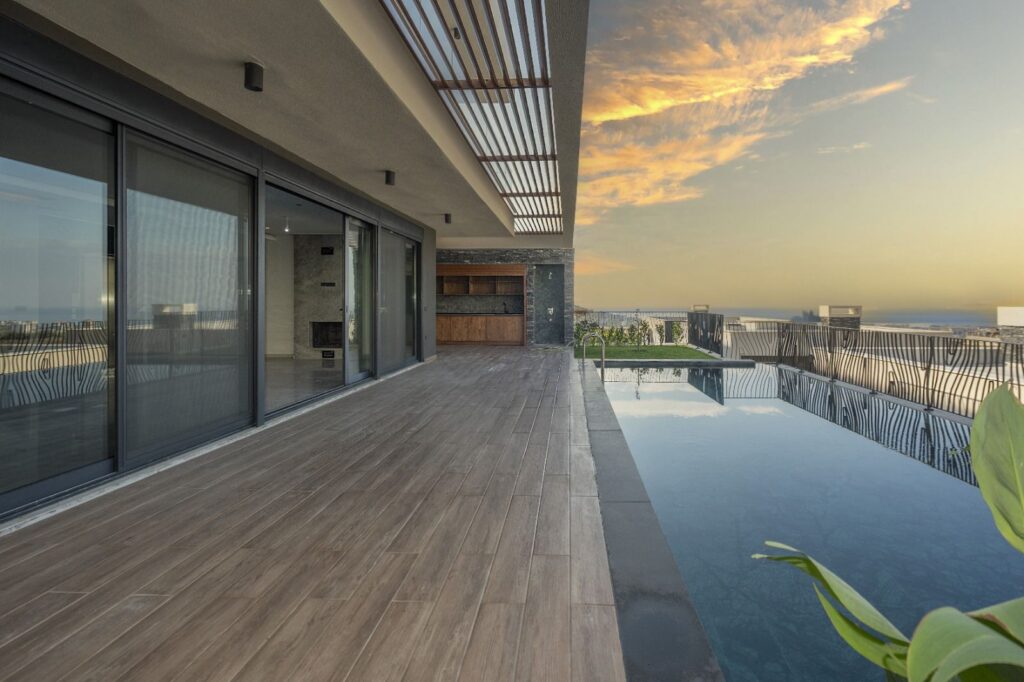 PRIVATER POOL – PRIVATER PARKPLATZ – GENERATOR – KAMELIA – MEER- UND NATURBLICK